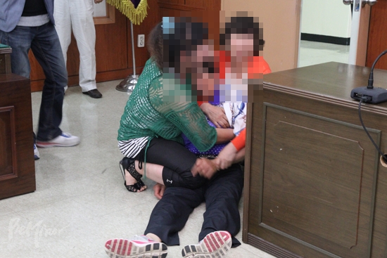 ▲장 씨와의 면담 중, 유가족들이 장 씨에게 거세게 항의하고 있다.