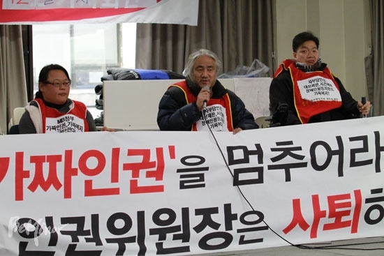 이어 손심길 참고인은 인권위 점거농성을 진행한 중증장애인들의 요구 중의 하나가 현병철 위원장의 사퇴였음에도 인권위와 관련이 없는 점거농성이라고 사실을 왜곡했다.