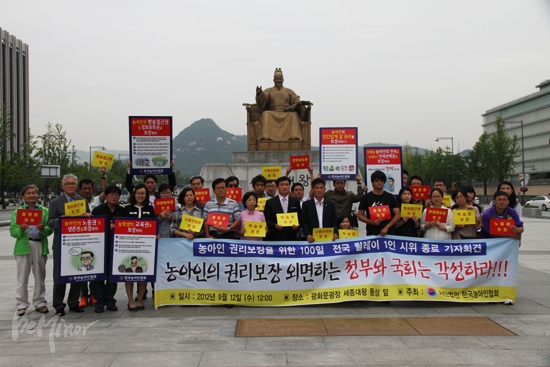 농아인의 날인 6월 3일부터 100일간 농아인 권리보장을 위해 전국에서 릴레이 1인 시위를 진행한 한국농아인협회가 12일 정오 광화문광장 세종대왕 동상 앞에서 기자회견을 열고 농아인의 인간다운 삶을 보장할 것을 촉구했다.