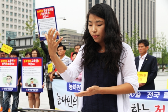 한편, 한국농아인협회는 100일간의 1인 시위를 통해 △수화를 고유한 언어로 인정하고 언어선택권 보장 △농학생 학습권 보장 △방송접근권과 정보취득권 보장 △노동권 및 생존권 보장 △선거 모든 과정에서 정보 취득에 차별 없는 참정권 보장 △문화향유권 보장 등을 요구해왔다.