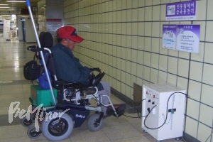 전동휠체어 일반충전기는 8시간 정도 충전해야 40km를 운행할 수 있지만, 급속충전소에서는 2시간만 충전하면 40km를 운행할 수 있다.