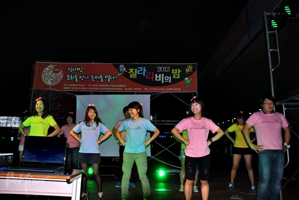 ![]() ▲직접 준비한 몸짓 공연을 야학학생과 대학생교사들이 하고 있다. |