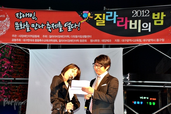 ![]() ▲야학학생과 교사의 사회로 질라라비의 밤이 문을 열었다. |