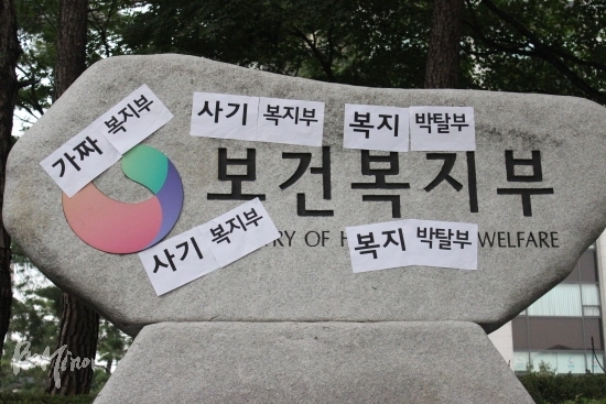 이에 공동행동은 10일 오전 복지부 앞에서 긴급 기자회견을 열고 복지부 이름을 ‘복지 박탈부’, ‘가짜 복지부’, ‘사기 복지부’라는 퍼포먼스를 선보이며 망자 앞에 사죄하라고 요구했습니다.