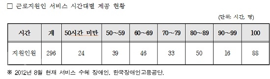 "월 100시간으로 제한해 근로지원인 중간에 퇴근"