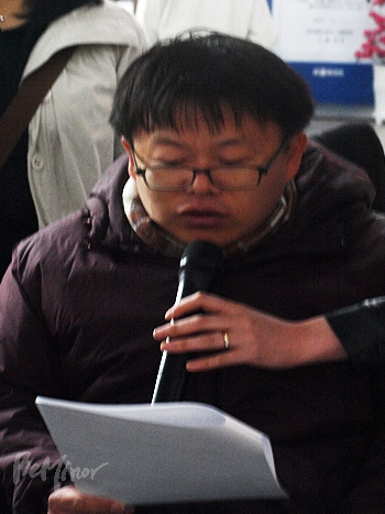 중랑장애인자립생활센터 김진우 활동가는 기자회견문 낭독을 통해 "철도공사는 장애인의 안전한 열차 이용을 요구하는 목소리를 외면하면서 더욱더 장애인의 이동할 권리를 후퇴시키고 있다"라고 지적하고 "철도 선진국, 세계 네 번째 고속철 생산보유국, 철도 선진화를 이야기하면서 이동편의시설에 개선을 선전하고 있지만, 실상은 장애인과 국민을 기만하고 있는 것"이라며 즉각적인 요구 수용을 촉구했다.