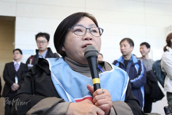 ![]() ▲경기장애인차별철폐연대 이형숙 공동대표의 발언 모습. |