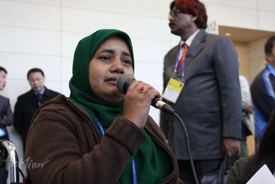 방글라데시 여성장애인연합 아슈라 대표는 “지금 이 자리에 있게 되어 얼마나 마음 아픈지 모른다”라며 “정부가 제대로 된 지원을 했다면 그녀가 왜 혼자 집에서 죽어갔겠는가. 그녀는 심지어 나보다도 어리다.”라고 말하곤 울음을 터뜨렸다.