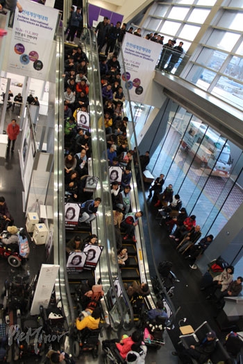 ![]() ▲1층에서 2층으로 올라오는 에스컬레이터를 막고 있는 주최 측. |
