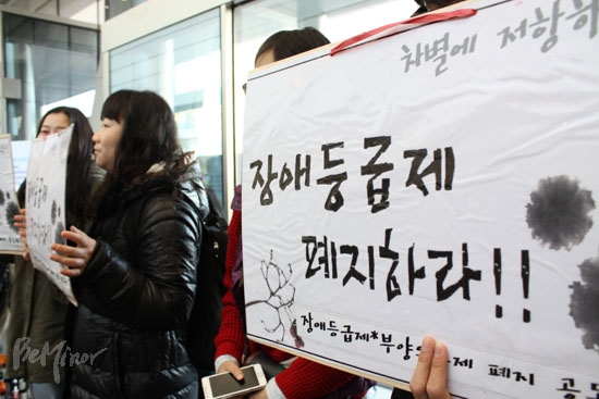 ![]() ▲지나가던 외국 장애여성이 기자회견을 유심히 바라보고 있다. |