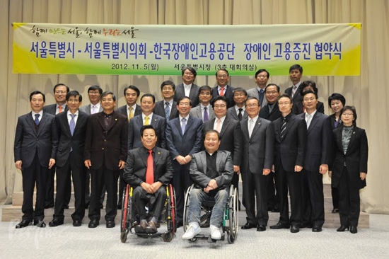▲서울특별시-서울특별시의회-한국장애인고용공단 장애인 고용증진 협약식 모습 ⓒ 한국장애인고용공단