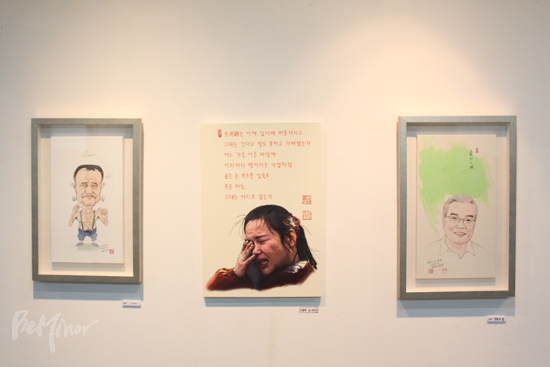 안 교수는 이번 전시에서 자신이 만난 장애인운동 현장의 활동가, 장애인야학 학생 등을 캐리커처로 그린 작품 50여 점을 선보이고 있다. 캐리커처라는 기법상 어떤 이는 다소 우스꽝스러운 모습으로, 어떤 이는 특정 부분이 다소 과장된 모습으로 액자 속에 남았다.