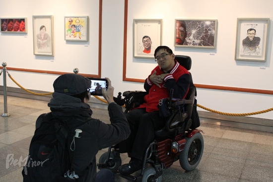 ![]() ▲자신의 캐리커처 앞에서 기념사진을 찍고 있는 관람객. |