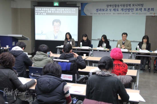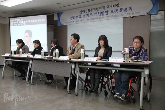 한국장애인인권포럼 장애인정책모니터링센터(아래 인권포럼 모니터링센터)는 27일 늦은 2시 이룸센터 교육실에서 ‘장애인활동지원정책 모니터링 결과보고 및 제도개선방안 모색 토론회’를 열고 활동지원서비스의 지역 간 격차 해소 방안에 대해 논의했다.