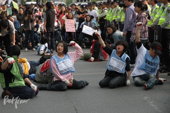 지금 추세대로 정부가 극소수의 장애인들에게만 서비스를 확대하는 식으로 마치 24시간 활동보조를 보장하는 것처럼 선전한다면 조만간 ‘장애인의 시간’을 날것으로 보여주는 이런 투쟁이 등장하지 않을까요?