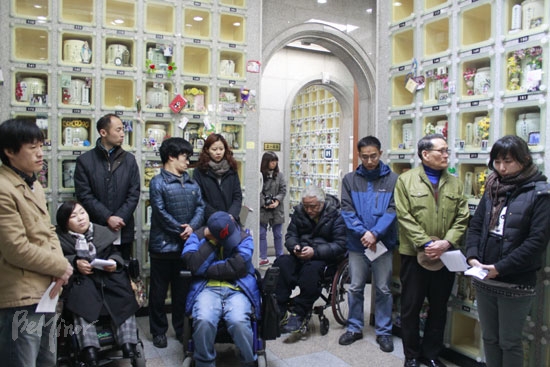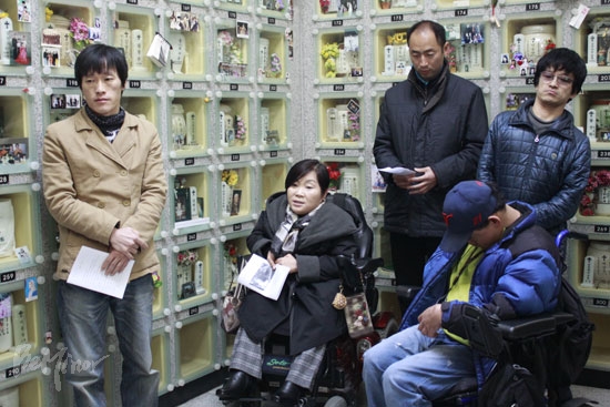 ![]() ▲이 땅에서 장애인으로, 여성으로, 빈민으로 살며 자신에게 주어진 현실을 투쟁으로 저항했던 최옥란 열사 11주기 추모제가 31일 이른 11시 벽제중앙추모공원에서 최옥란열사추모사업회 주최로 열렸다. |