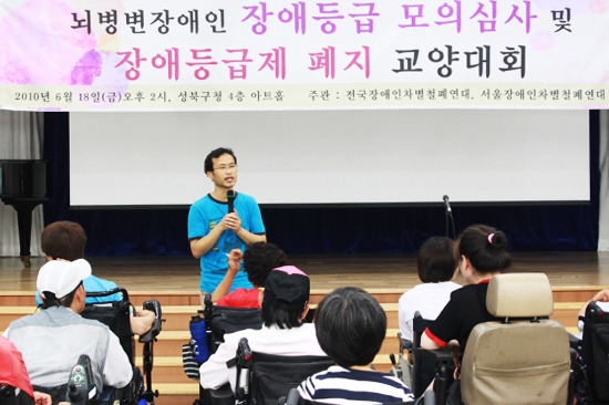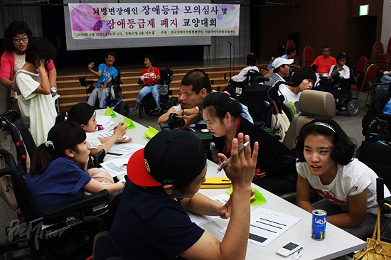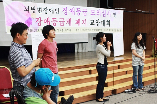 하지만 이날 교양대회에 온 참가자들은 장애등급제를 폐지하고 활동보조서비스 등의 사회서비스를 고유한 판정체계에 따라 받을 수 있도록 장애인복지 전달체계를 개편해야 한다는 데 한목소리를 냈다.