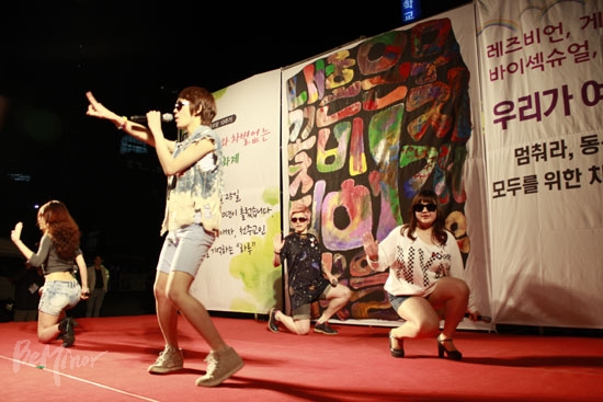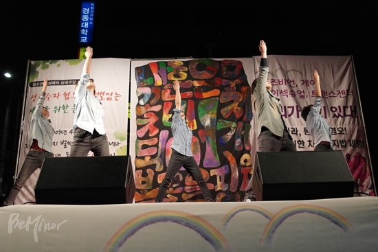 ![]() ▲동성애자인권연대 몸짓패가 몸짓 공연하는 모습. ⓒ 동성애자인권연대 |