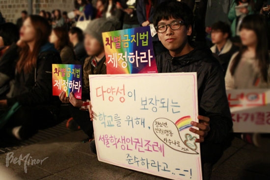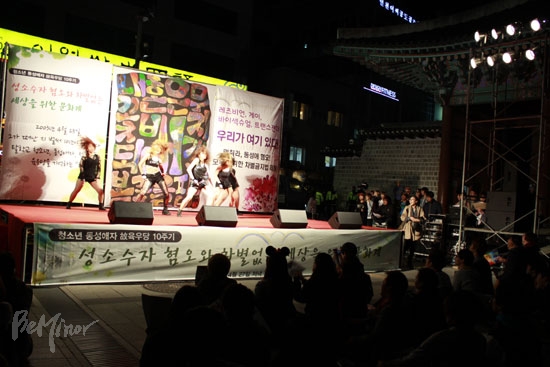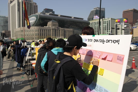 ![]() ▲이날 늦은 3시에는 청소년 성소수자들이 자신들의 존재와 인권을 알리는 캠페인을 진행했다.ⓒ 동성애자인권연대 |