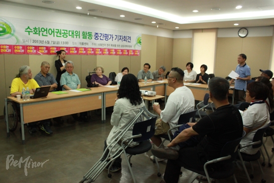 수화언어권공대위는 7일 늦은 1시 이룸센터 교육실에서 수화언어권공대위 활동 중간보고 기자회견을 열었다.