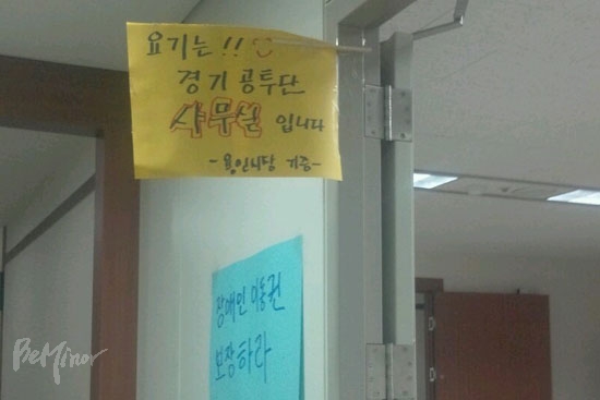 ![]() ▲경기공투단은 용인시장과의 합의가 잘 이루어지지 않아 시장실을 점거하기도 했다. ⓒ 전국장애인차별철폐연대 |