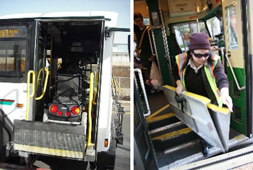 간혹 오래된 기종에는 리프트가 설치되어 있기도 하지만, 대부분의 버스는 차체가 내려앉고 스위치로 펴고 접을 수 있는 경사로가 장착되어 있다. 샌프란시스코와 주변 도시들을 연결하는 전철(‘바트(Bart)’라고 불린다)의 모든 역사에는 엘리베이터가 설치되었고, 휠체어 사용자들이 가장 두려워하는, 전철과 승강장 사이에 휠체어 바퀴가 빠질 일은 염려하지 않아도 된다. 알록달록 갖가지 고풍스러운 원형을 그대로 보존하여 오늘날까지 관광자원으로 운행하는 전차들 또한 예외가 아니다. 한 사람이 서 있으면 다른 사람이 지나가기조차 위태할 정도로 좁고 열악하게 보이는 그 안에서, 운전기사가 철판으로 된 경사로를 꺼내 도로보다 높아져 있는 승강장과의 사이를 연결해준다. 혹여 다른 사람의 발을 밟을까 노심초사하며 휠체어 석에 자리를 잡을 수 있다.