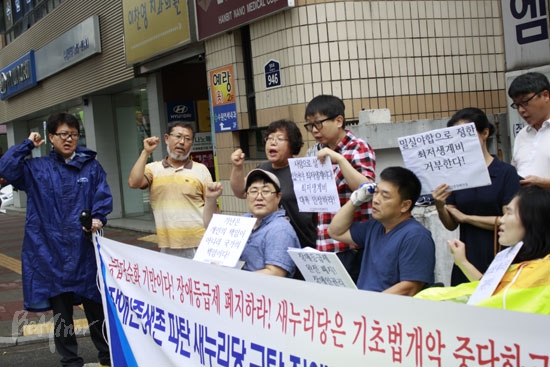 ![]() ▲경기장애인차별철폐연대는 23일 이른 10시 새누리당 경기도당 앞에서 장애민중의 생존을 파탄 내는 새누리당을 규탄하고 장애등급제, 부양의무제 폐지를 촉구하는 기자회견을 열었다. |