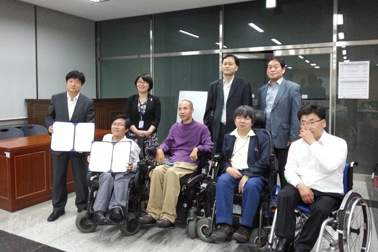 ![]() ▲마포구와 합의를 이끈 한자연 대표단. ⓒ마포장애인자립생활센터 |