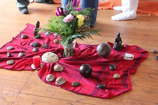 오후에 진행된 탄트라 마사지는 피아와 에리히를 통해서 시연이 되었습니다. 탄트라 마사지는 영상이나 글로 배울 수 있는 것이 아니라 각자의 자율성과 그때 그때의 역동에 따라 달라지는 것이라고 해서 촬영은 하지 않기로 하였고, 소품들만 기록으로 남겼습니다.