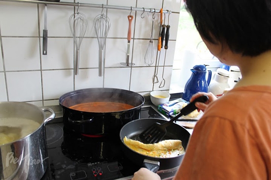 저녁에는 공감 연수팀이 저녁을 준비하기로 결의하고, 준비에 들어갔습니다. 메뉴는 야채 샐러드, 야채 볶음밥, 감자국, 파스타를 이용한 떡볶이, 호박부침개, 계란 말이였습니다!
