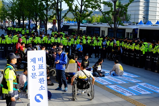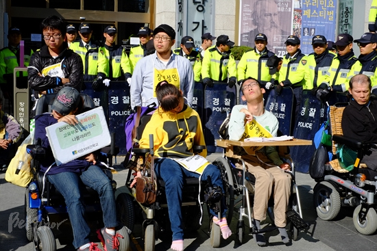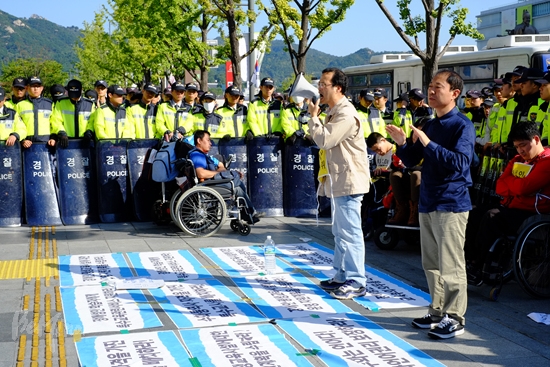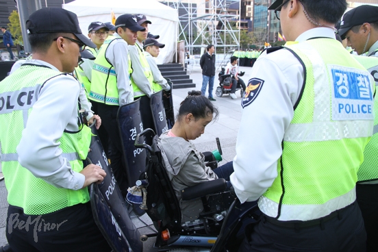 한편 이날 이른 7시 30분경부터 세종문화회관으로 이동하려는 장애인 활동가들을 경찰이 막는 과정에서 극심한 마찰을 빚었다.