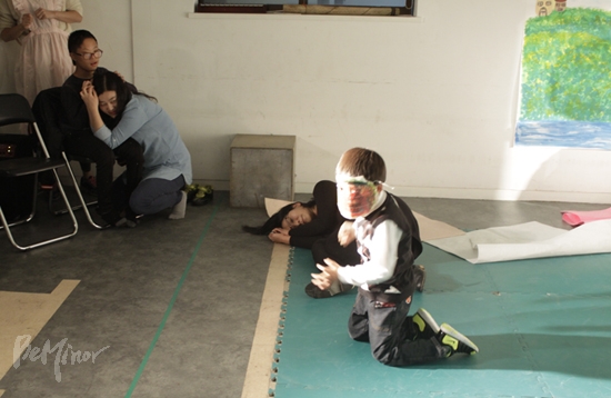 ![]() ▲프로그램 발표회 중 가면극을 통해 내면을 표현하고 있는 참가자. |