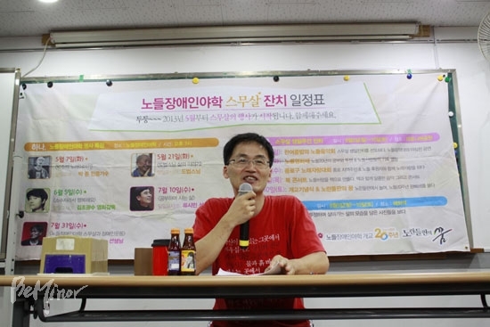 ![]() ▲노들장애인야학 20주년 명사특강에서 강의하고 있는 고병권 씨. |