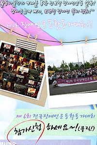 전국장애인차별철폐연대가 오는 8월 4일부터 6일까지 2박3일 동안 대전장애인고용공단 직업능력개발원에서 열리는 ‘제6회 전국장애인운동활동가대회’ 참가 신청을 받고 있다.