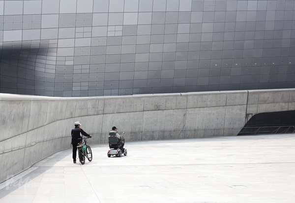 총 길이 533m로 알려진 ‘디자인둘레길’과 4층 높이의 조형계단도 피곤하긴 마찬가지입니다. 그야말로 장애인과 노약자에게는 난코스입니다. 실용적인 측면과는 거리가 먼, 시각적인 효과를 극대화한 건물로 알려진 만큼 편히 앉아 쉴 공간조차 없습니다. 한마디로 사회적 약자에 대한 배려라고는 눈곱만큼도 찾아보기 어렵습니다.