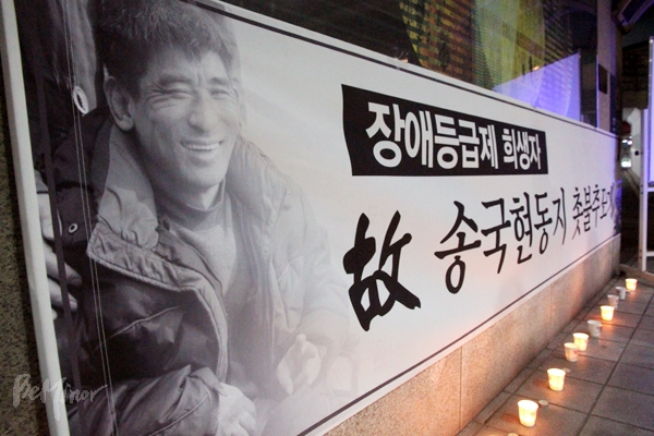 ![]() ▲장애등급제 희생자 故 송국현 동지 추모 촛불문화제 |