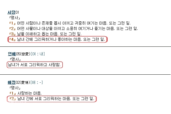 그러나 국립국어원은 지난해 '동성애를 조장한다'라는 등의 보수 기독교계 요구를 받아들여 '사랑'의 단어 뜻풀이를 다시 이성애 중심적으로 돌려놓았다.