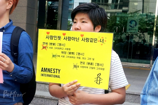 ![]() ▲차별적인 '사랑' 뜻풀이 재개정에 반대하는 피켓을 들고 있는 참가자. |