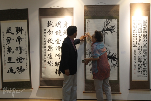 ![]() ▲관람객들이 한국 작가들의 서예 작품과 수묵화를 감상하고 있다. |