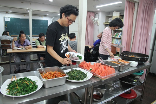 ![]() ▲지난 4월 1일, 노들장애인야학에선 급식이 시작됐다. 그러나 기초생활수급자가 대부분인 중증장애인 학생들에게 급식비 3000원은 큰 부담이다. 급식이 시작됐지만 급식비가 없어 여전히 밥 먹지 못하는 이들이 많다. |