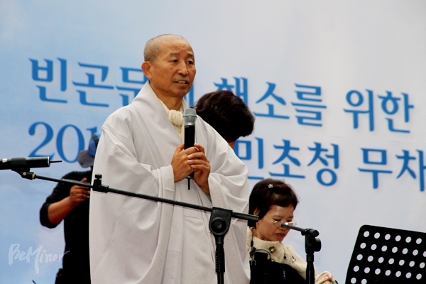 대한불교조계종 자성과쇄신결사추진본부(본부장 도법스님)는 17일 늦은 4시 빈곤사회연대 등 반빈곤운동단체들과 함께 조계사 대웅전 앞마당에서 ‘빈곤문제 해소를 위한 2014년 시민초청 무차대회’를 열고 빈곤문제 해결을 위한 불교인의 발원을 세웠다.