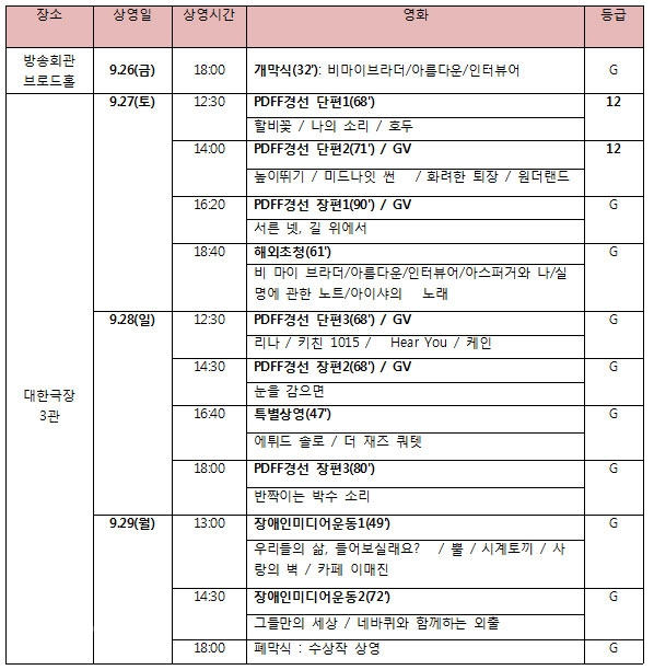 15회 장애인영화제(PDFF)가 한국농아인협회 주최로 26일~29일까지 목동 방송회관 2층 브로드홀과 대한극장 3관에서 열린다.