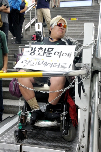 23일 늦은 2시, 광화문역 엘리베이터 설치 시민모임, 일명 '광엘모'가 광화문역 승강장에 모여 엘리베이터 설치를 요구했다. 이들은 장애인도 안전하고 편리하게 이동할 권리가 있다며 사고가 잦은 리프트가 아닌 안전한 엘리베이터 설치를 요구했다.