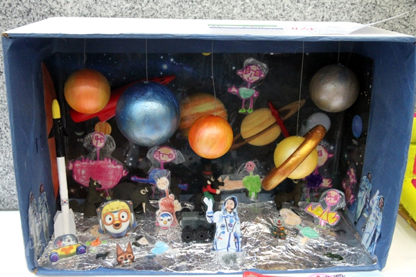 사진은 수원초등학교 강은희 학생의 출품작 '와~ 우주쇼다'로, 작가가 생각하는 우주의 모습을 입체적으로 구현했다. 이 작품은 대상으로 선정됐다.