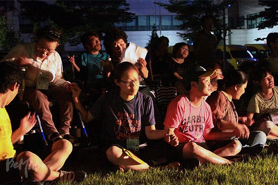 전국장애인차별철폐연대(아래 전장연) 주최로 진행되는 제6회 전국장애인운동활동가대회 문화제가 5일 저녁 7시 한국장애인고용공단 대전직업능력개발원 앞마당에서 열렸다.