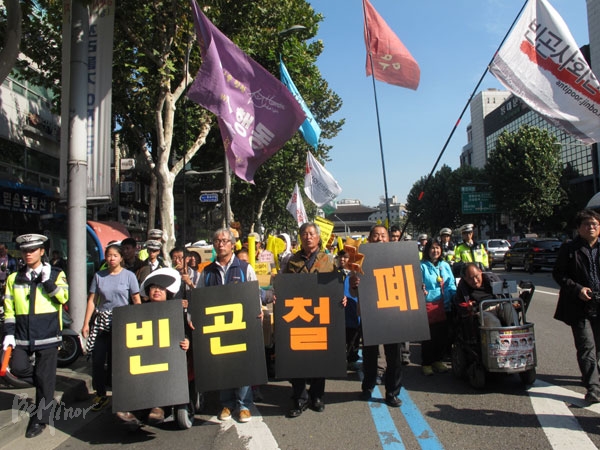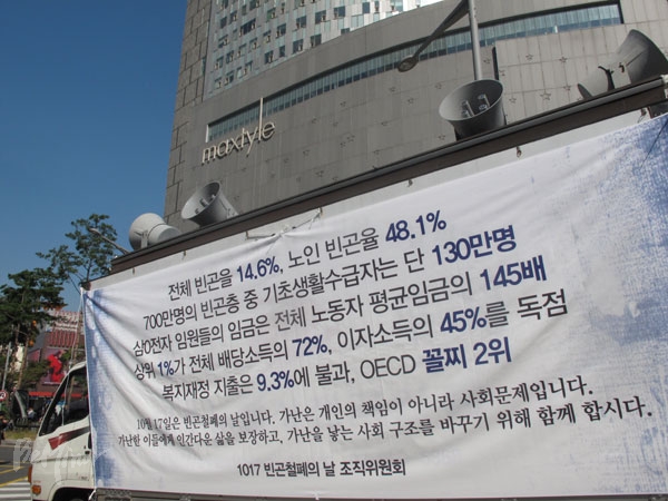 10월 17일 유엔이 정한 세계 빈곤철폐의 날을 맞아 장애인, 철거민, 노점상, 노숙인, 에이즈 감염인 등 이 땅의 빈민들이 “가난한 이들의 죽음을 멈추자”라고 외치며 거리로 나섰다.