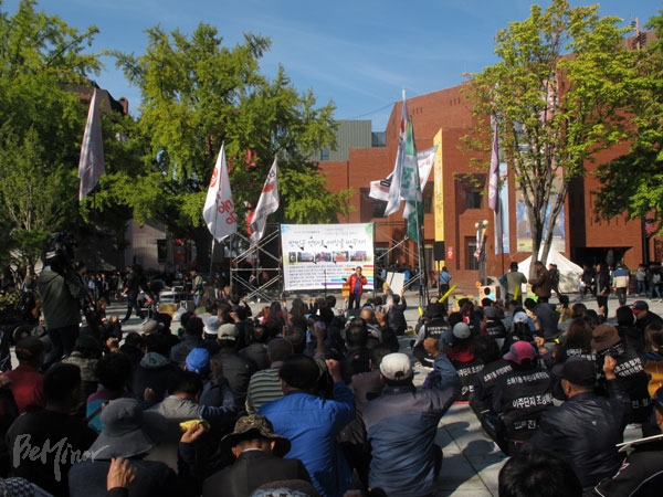 전국노점상총연합 김장용 수석부위원장은 “노점상들에겐 식품위생법 등의 고소·고발로 수십만 원의 벌금이 매겨진다”라며 “오늘 아침에도 강남에 용역 100여 명이 들이닥쳤다. 스스로 먹고살겠다는데 나라는 도와주지는 못할망정 ‘쪽박’ 차게 한다.”라며 분노했다.