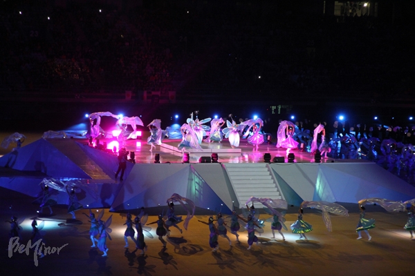 이날 개회식은 '불가능이 우리를 이끈다'라는 주제의 공연으로 시작됐다. '인류, 존재하다', '불가능, 그 높은 벽', '창의성이라는 열쇠', '인생은 축제' 등 4개 장의 공연이 준비됐다. 특히 '창의성이라는 열쇠' 장에서는 인간이 창의력을 발휘해 대형 휠, 로봇, 의족, 의수 등 다양한 발명품를 만들어내며 인간이 불가능을 극복하는 과정을 담았다.