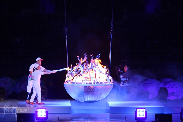 이어 아시아경기대회기 게양, 선수·심판·감독 선서 등을 거쳐 성화 점화가 진행됐다. 광저우장애인아시안게임 유도 금메리스트 최광근 씨와 안내견 '세찬'이 첫번째 주자로 나섰으며, 마자막 주자는 런던세계장애인수영선수권대회 금메달리스트 김세진 씨와 그의 어머니 양정숙 씨였다.