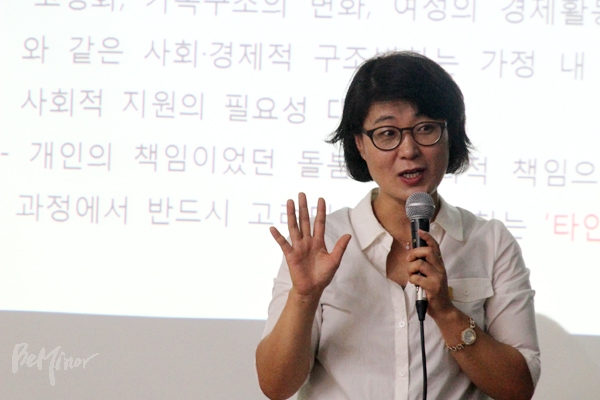 이 제도를 소득적 측면에서 접근하기 시작하면 의미가 없어집니다. 그래서 가족조차도 타인 중심적 사고를 하지 않으면 안 됩니다. 복지가 누군가의 욕구에서 출발해 이윤으로 돌아오는 방식이 되었을 때에는 시장원리가 아주 복잡하게 작동합니다. 그래서 복지라는 공간 안에서 우리가 추구해야 할 가치가 무엇인가가 아주 복잡해지는 것입니다.